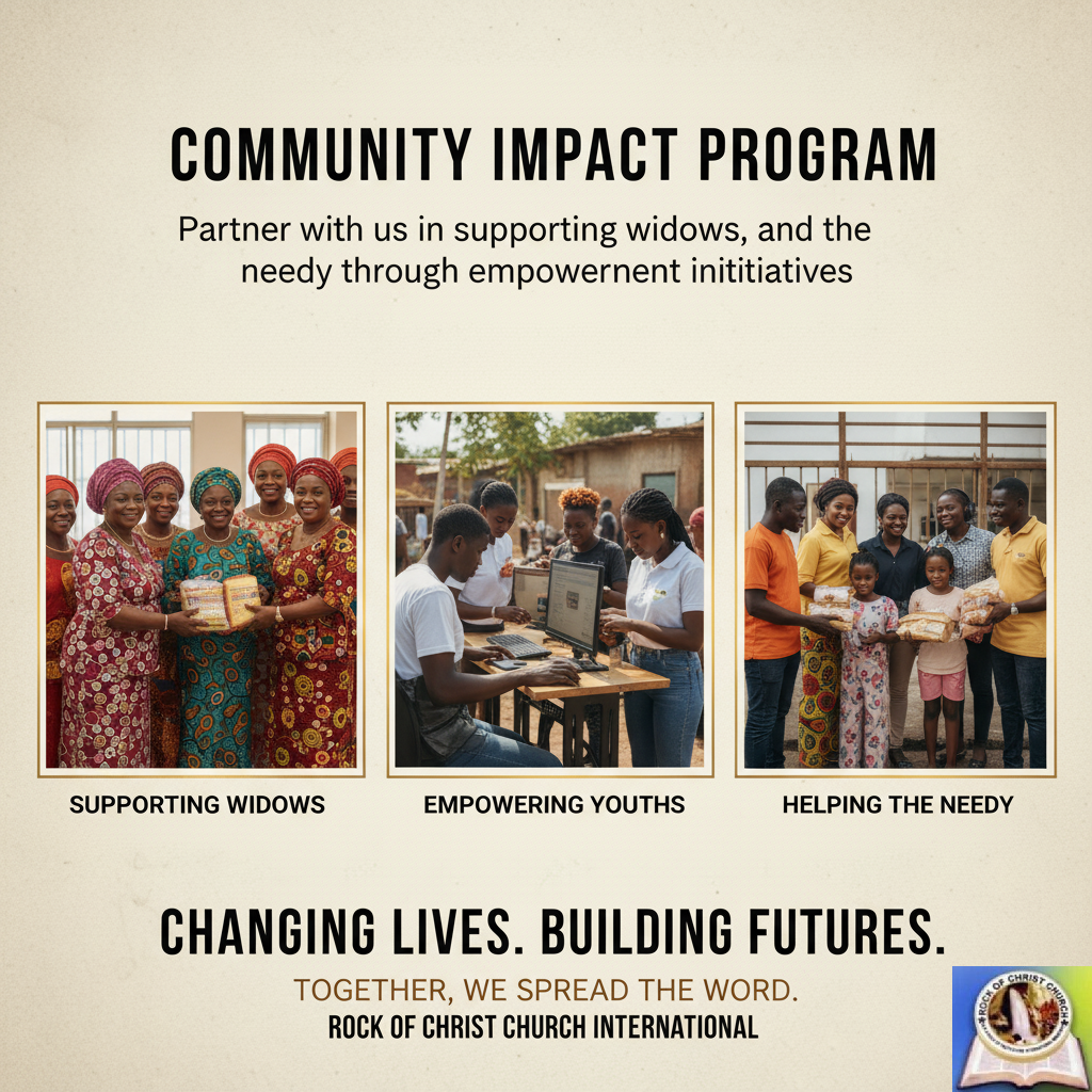 You can be part of what God is doing through Rock of Christ Church International. Your prayers, service, and giving help us reach more souls and strengthen our ministry impact.