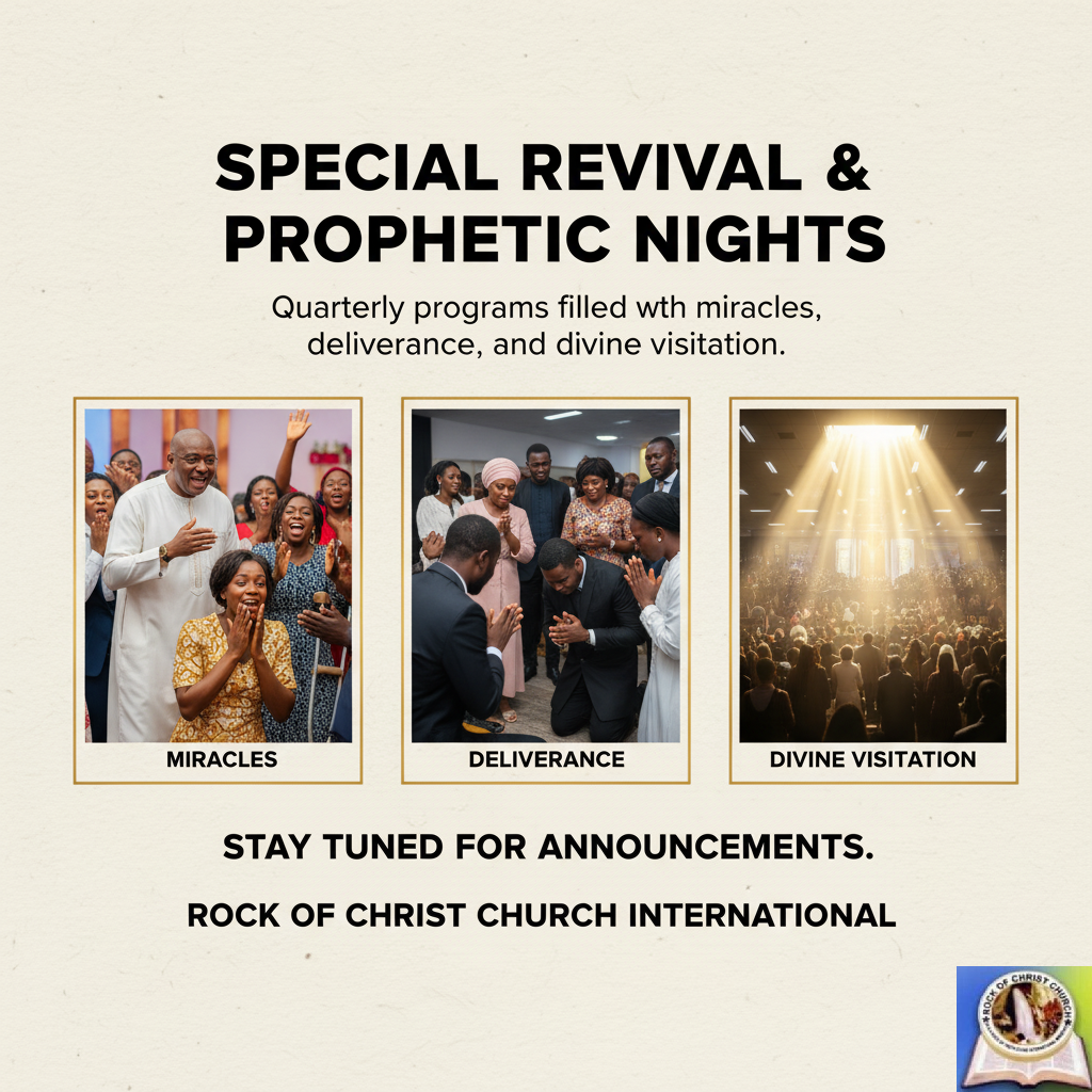 Quarterly programs filled with miracles, deliverance, and divine visitation.